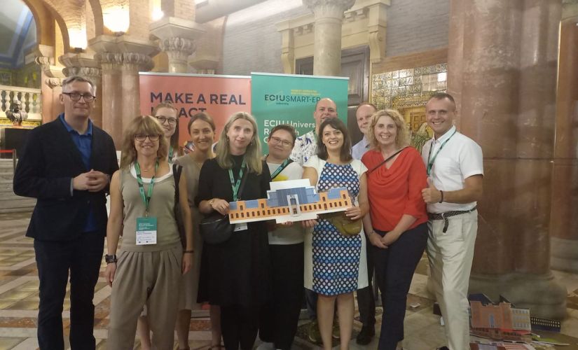 Among the group of more than 250 attendees of the ECIU University Research Conference Lodz University of Technology had a strong presence. Spearheaded by the Vice Rector for Science, prof. Łukasz Albrecht, dr hab. inż. Agnieszka Dybała-Defratyka, TUL professor (Research Support Center), and dr inż. Dorota Piotrowska, TUL professor (ECIU institutional coordinator), the representatives of the TUL academic and administrative staff had the opportunity to engage in a series of workshops, share best practice in innovative approaches to research, and explore potential for cooperation in research. The group included researchers from two TUL faculties: from the Faculty of Organization and Management, dr inż. Barbara Galińska - Transport and Mobility section, dr inż. Joanna Kopania and dr hab. inż. Edyta Pietrzak - Circular Economy section, and from the Faculty of Electrical, Electronic, Computer and Control Engineering, dr inż. Paweł Kelm and mgr inż. Filip Stuchała - Energy and Sustainability section. The conference was also attended by two members of the TUL administrative staff: Marta Rybicka, TUL ECIU Office, and Martyna Stawiana, Project Services.