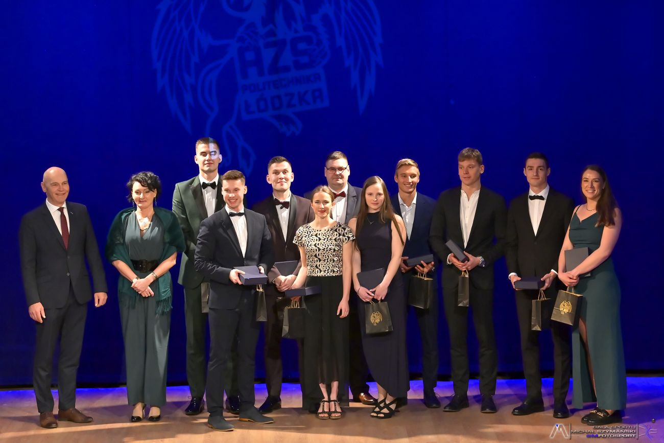 Words of appreciation were extended by the President of AZS Łódź, dr Lech Leszczyński, and the Secretary of AZS Łódź, dr Aleksandra Leszczyńska to: Adam Pigłowski (sports aerobics), Kinga Harast (karate), Szymon Stawiarski (karate), Julia Komorowska (karate), Grzegorz Brochocki (football), Maksymilian Mużdżyński (track and field), Mateusz Rzeźniczak (track and field), Jan Kałusowski (swimming), Aleksandra Bednarek (swimming), Marcel Wągrowski (swimming), Zuzanna Dzwonnik (swimming), Maciej Kaszewiak (volleyball), and the handball atheletes: Karolina Niedbała, Wiktoria Szymczak, Dominika Nyga, Marcelina Lis, Martyna Agata, Barbara Sibelska. They also thanked the coaches: Monika Boruch (sports aerobics), Agnieszka Kowalska (women's handball), Robert Benkes (floorball), Marcin Laśkiewicz (powerlifting triathlon), and Sławomir Scieszko (futsal and men's football).