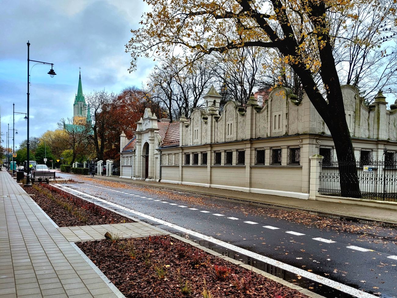 In addition, a bike box is now in place, which, along with new lane markings, improves traffic flow and safety. The building of the historic Richter coach house, property of Lodz University of Technology, was given prominence with a new forecourt featuring greenery and park benches. Room for a city bike station at the intersection with Wólczanska Street was also kept.