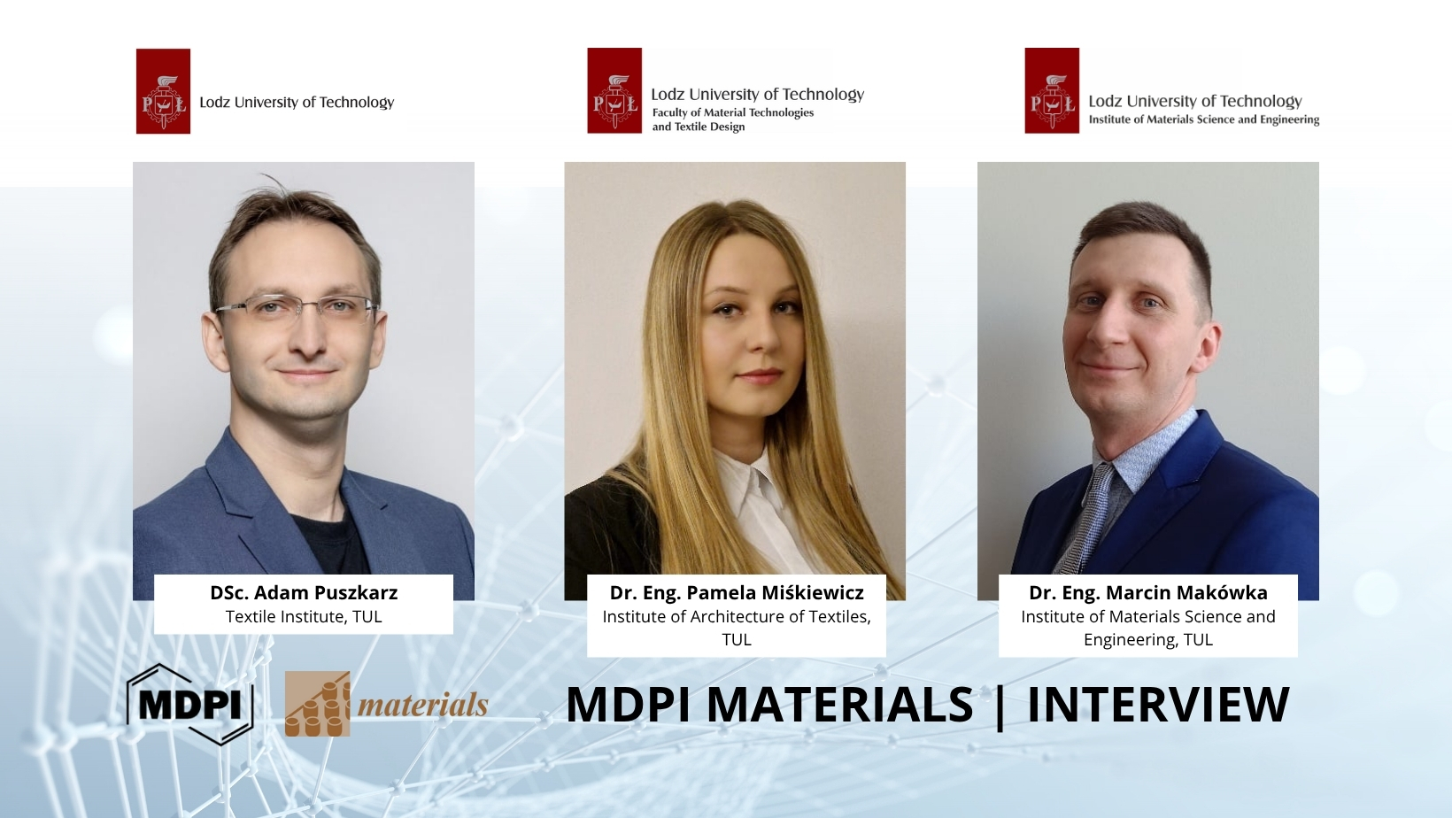 W rozmowie opublikowanej na stronie MDPI Materials naukowcy Politechniki Łódzkiej opowiadają o wyzwaniach, inspiracjach i potencjale swoich prac badawczych.