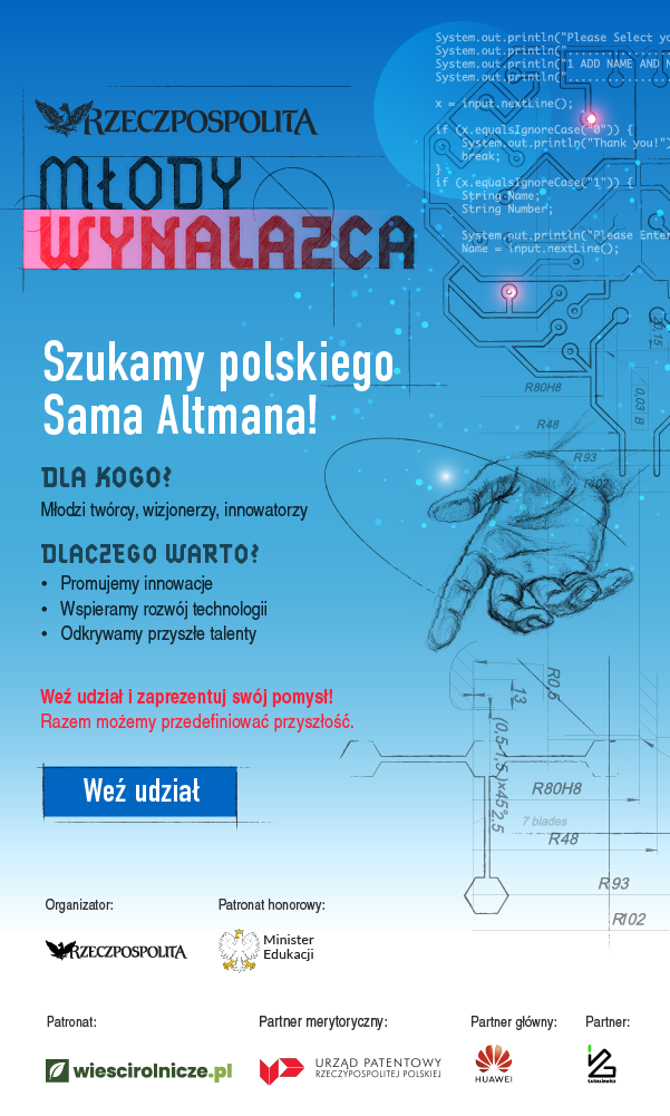 Więcej informacji i formularz zgłoszeniowy: https://mlodywynalazca.rp.pl/