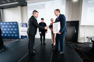 Dyplom odebrali dr hab. inż. Andrzej Romanowski prof. PŁ - prorektor ds. kształcenia oraz dr hab. inż. Beata Brożek-Płuska, prof. PŁ - prodziekan ds. kształcenia Wydziału Chemicznego. Uroczystość odbyła się 25 marca w Warszawie.